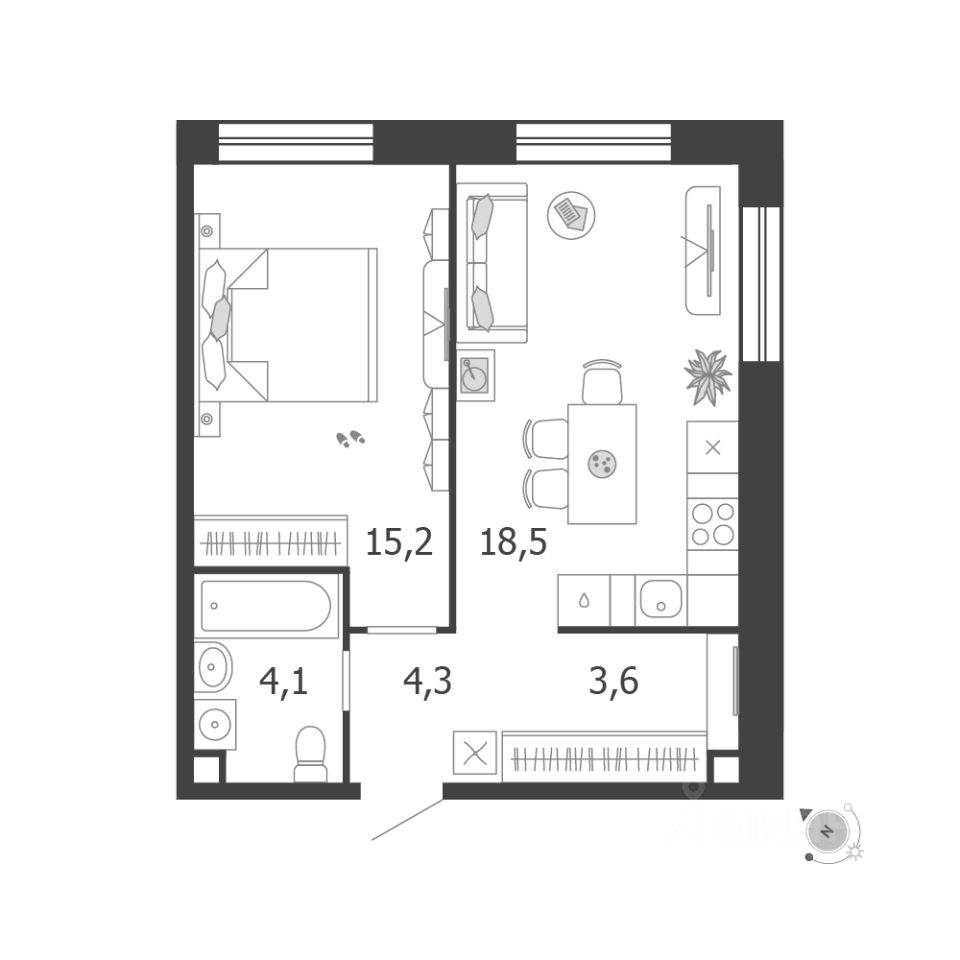Продаётся 1-комнатная квартира в строящемся доме (Корпус 8 (3 очередь)), срок сдачи: IV-кв. 2026, общей площадью 45.7 кв.м., на 10 этаже. Это город в городе, который не подстраивается под старые рамки, а задает новую планку и стандарт жилого района в России.