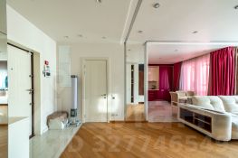- Премиальный итальянский кухонный гарнитур со встроенной техникой. Бытовая техника брендов Electrolux (холодильник, духовой шкаф, микроволновка), стиральная и сушильные машины Miele в постирочной. Гардеробная с системой хранения.
