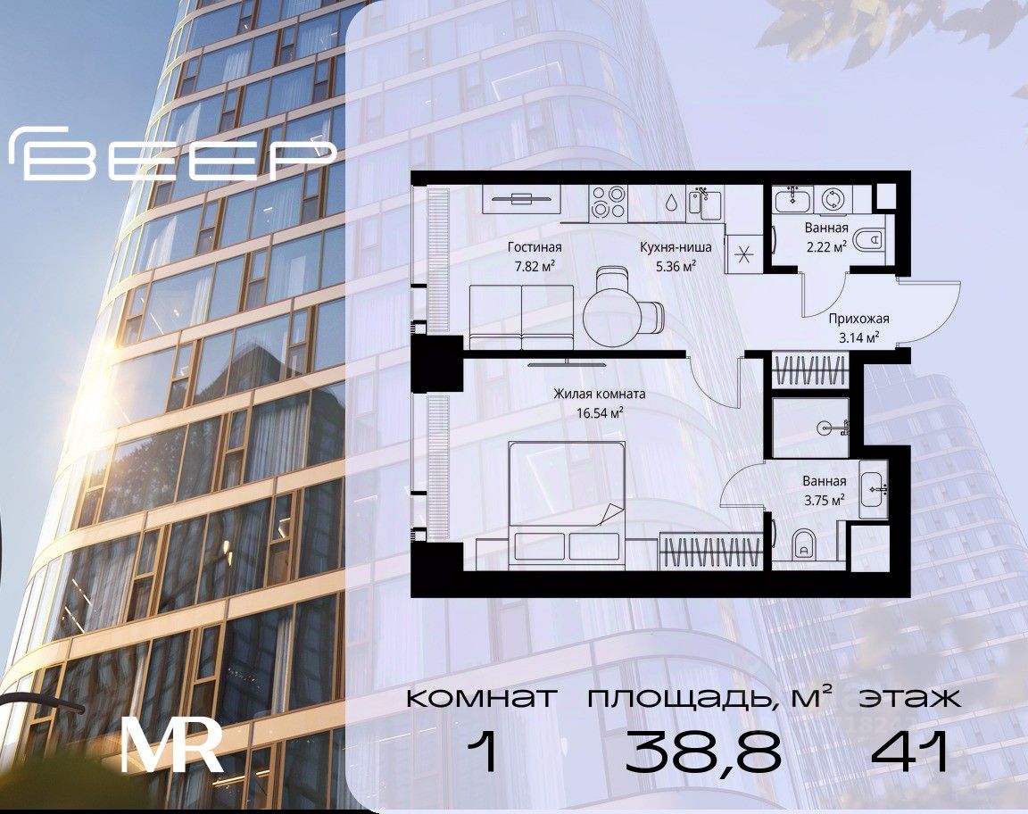 Старт продаж новой очереди! Продаётся 1-комнатная квартира общей площадью 38.83 м² без отделки в ЖК Веер на 41-м этаже 70 этажного дома. Веер.2 — вторая очередь футуристичного квартала бизнес-класса Веер. Это новая экосистема в престижном Западном округе Москвы, поражающая масштабностью внутренней инфраструктуры. ЖК находится всего в 5 минутах от Кутузовского проспекта и в 15 минутах от Сколково. Ансамбль из четырех стеклянных башен с доминантой в 237 метров разработан по принципу современного урбанизма и выражен в лаконичных объемах — параллелепипедах со сглаженными углами, которые придают зданиям утонченный вид. Расположение и транспортная доступность: • Образовательный комплекс в составе топовой школы, состоящий из двух зданий: основное на 1500 школьных и 450 дошкольных мест, отдельное здание детского сада на 300 мест. • Парк "Долина реки Сетунь" площадью более 700 гектаров • Рядом МГУ, МГИМО, РАНХиГС и Академия ФСБ • 15 минут по Кутузовскому проспекту до ужина в центре с видом на Москву-реку • 18 минут пешком до м. "Давыдково" • Открытие новых станций метро в шаговой доступности в будущем Инфраструктура: Двор в Веер.2 — это ассиметричные холмы, каменные "лабиринты", зеленые ковры и хвойные островки с единой живой экосистемой. Здесь есть все: • Павильон умиротворения Место отдыха под навесом в спокойной части двора, окруженное деревьями. • Активная тропа Тактильная дорога из камней разного диаметра для расслабляющих прогулок. • Бизнес-гарден Оборудованное пространство для работы на свежем воздухе со столом и встроенными розетками. • Детская площадка Двухуровневая площадка "Ботаника" с песочницей, переговорной трубой и горкой "Дружба". Компания MR предлагает своим клиентам специальные условия приобретения квартир в рамках программ ипотечного кредитования от банков-партнеров.
