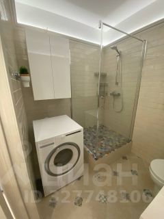 Входная зона отделена от основной части квартиры. Два совмещенных санузла: в одном ванна, в другом душевая кабина.