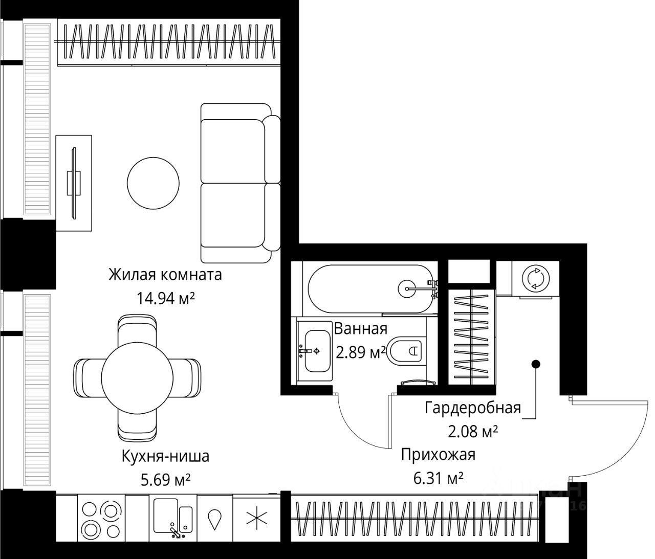 Продаётся студия общей площадью 31.91 м² без отделки в ЖК Веер на 2-м этаже 70 этажного дома.