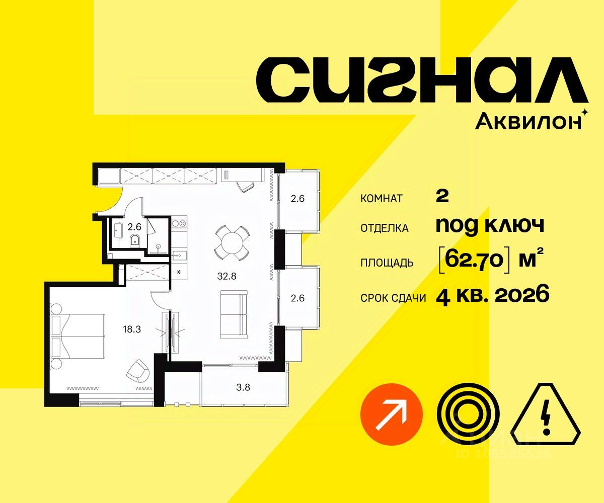Продаются просторные 2-комнатные апартаменты на 10 этаже 23-этажного современного апарт-комплекса Сигнал. Срок сдачи: 4 кв. 2026 г.