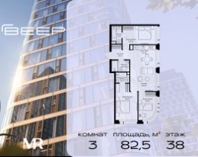 Продаётся 3-комнатная квартира общей площадью 82.52 м² без отделки в ЖК Веер на 38-м этаже 70 этажного дома.