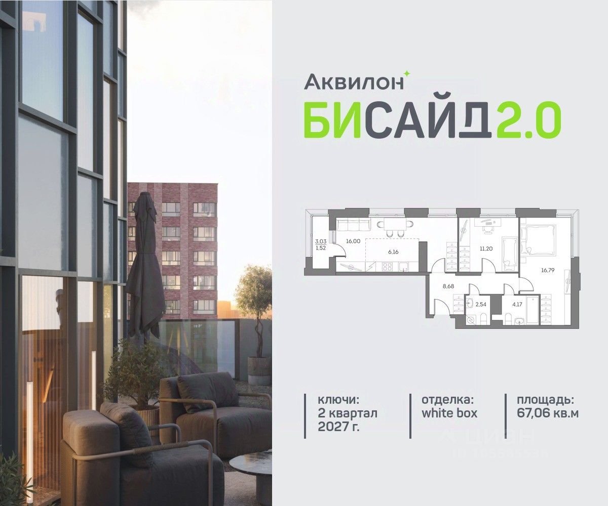 Продается просторная 2-комнатная квартира на 22 этаже современного жилого комплекса Бисайд 2.0. Вид из окон: на улицу. Срок сдачи: 2 кв. 2027 г.