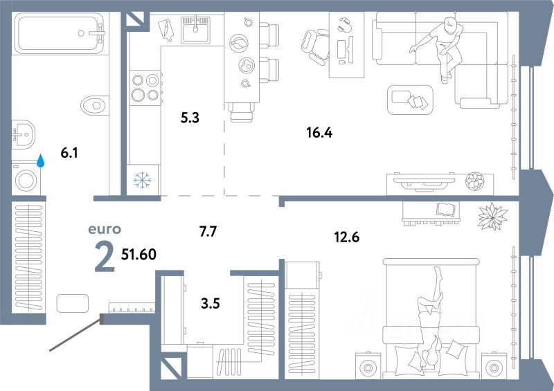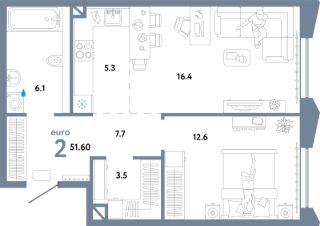 Продаётся 2-комнатная квартира в строящемся доме (Дом 1), срок сдачи: II-кв. 2026, общей площадью 51.6 кв.м., на 22 этаже. Многоэтажные жилые дома с объектами инфраструктуры, расположенные по адресу: г. Москва, внутригородское муниципальное образование Очаково - Матвеевское, ул. Озерная, вл. 42.