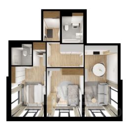 В корпусе 1.4 появится общественная терраса на 30-м этаже. Доступ сюда есть только у жителей, поэтому вы не встретите в этом пространстве посторонних людей. Здесь можно заниматься спортом, отдохнуть за чтением книги или создать собственный сад. А ещё отсюда открываются красивые виды на город.