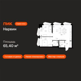 Продаётся 2-комн. квартира площадью 65,4 кв.м на 23 этаже 38 этажного дома (Корпус 1.3, Секция 3) проекта ПИК Нарвин. Светлый просторный подъезд на уровне земли, функциональная планировка, большие окна, c отделкой.