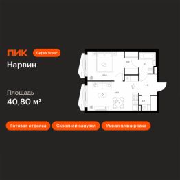 Продаётся 1-комн. квартира площадью 40,8 кв.м на 6 этаже 38 этажного дома (Корпус 1.3, Секция 3) проекта ПИК Нарвин. Светлый просторный подъезд на уровне земли, функциональная планировка, большие окна, c отделкой.