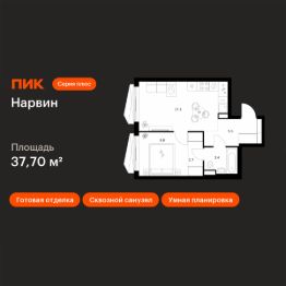 Продаётся 1-комн. квартира площадью 37,7 кв.м на 22 этаже 38 этажного дома (Корпус 1.3, Секция 3) проекта ПИК Нарвин. Светлый просторный подъезд на уровне земли, функциональная планировка, большие окна, c отделкой.
