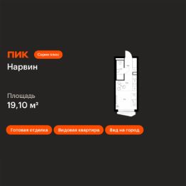 Продаётся квартира-студия площадью 19,1 кв.м на 22 этаже 38 этажного дома (Корпус 1.3, Секция 3) проекта ПИК Нарвин. Светлый просторный подъезд на уровне земли, функциональная планировка, большие окна, c отделкой.