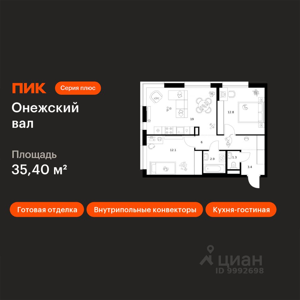 Продаётся 1-комн. квартира площадью 35,4 кв.м на 6 этаже 9 этажного дома (Корпус 1.1.4, Секция 4) проекта ПИК Онежский вал. Светлый просторный подъезд на уровне земли, функциональная планировка, большие окна, c отделкой.