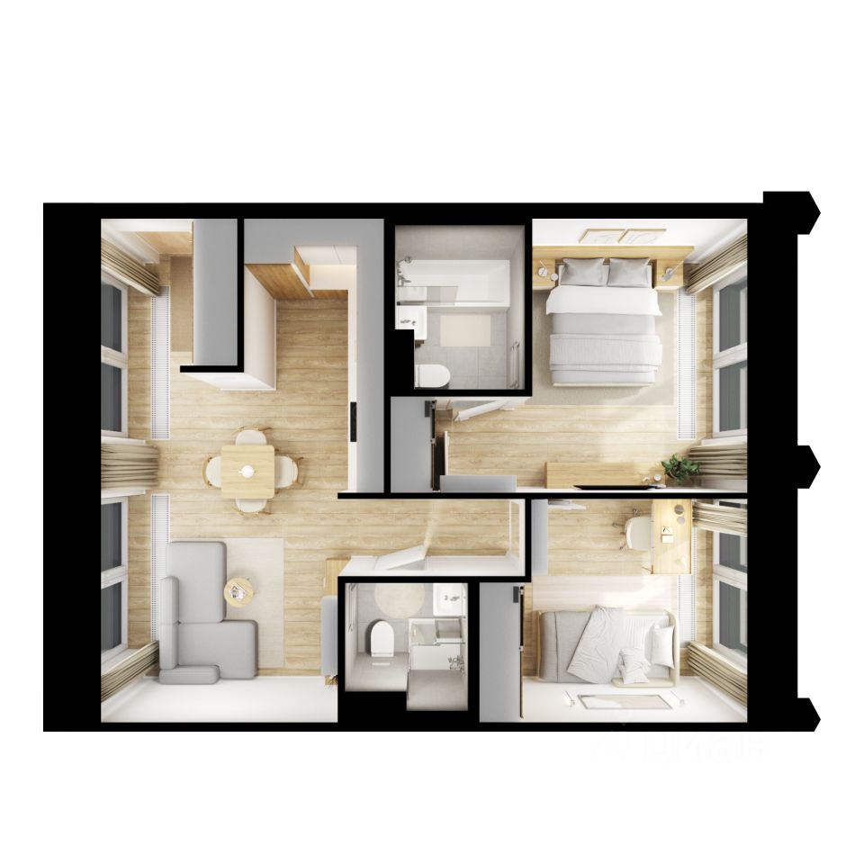В "Бусиновском парке" предусмотрены квартиры с панорамным остеклением, различными балконами, эркерами, угловыми окнами и большим количеством окон — до пяти в одной комнате. В таких квартирах широкий угол обзора: можно пить кофе, наблюдая за жизнью на улице и наслаждаясь ощущением простора. Ещё больше комфорта придаст мягкий солнечный свет, который равномерно осветит всю квартиру. Артикул 95