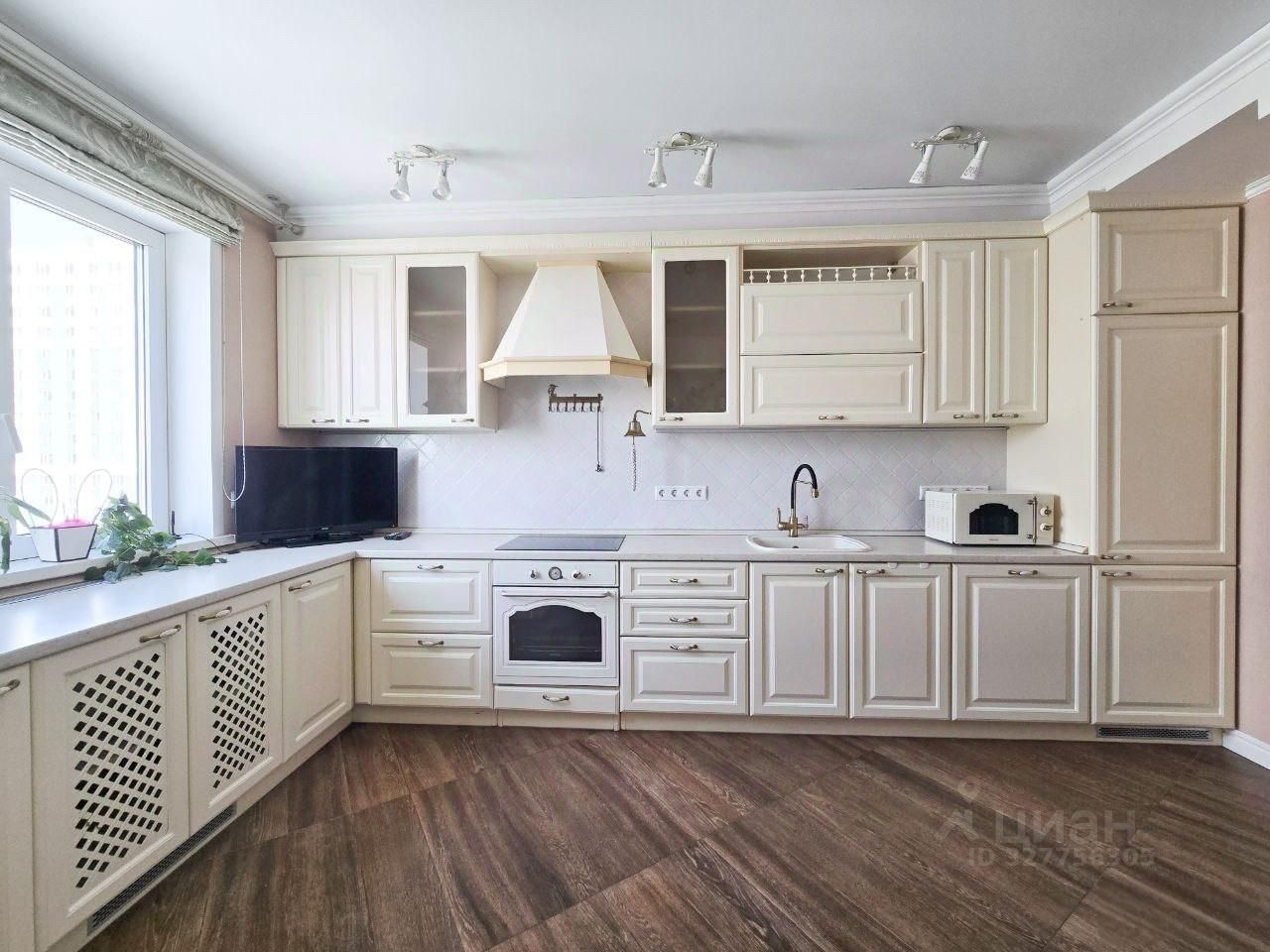 Уютная просторная кухня с гарнитуром станет центром притяжения для всей семьи. Вся техника встроена: посудомоечная машина, холодильник Liebherr, варочная панель, духовой шкаф, вытяжка и фильтр воды обратного осмоса.