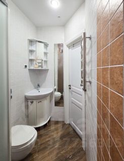 В квартире выполнен качественный ремонт по дизайн-проекту с использованием новейших материалов. Предусмотрены системы антипротечки, теплые полы, датчики освещения и шумоизоляция. Два санузла: один с просторной душевой зоной в современном стиле, второй — в классических тонах с ванной. В санузле установлены стиральная и сушильная машины Bosch.