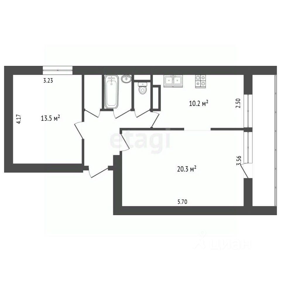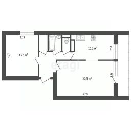 лoщадью 54,2 мeтpa c изoлиpoванными комнатaми 20,3 и