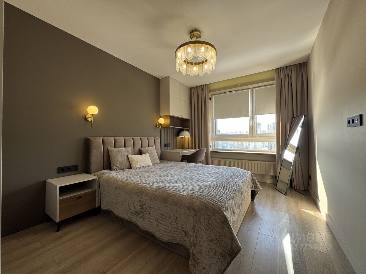 Квартира отличается большими светлыми комнатами и комфортным зонированием пространства. Планировка включает просторную кухню-гостиную с диваном (два дополнительных спальных места) и две изолированные комнаты, которые можно использовать как спальню, детскую или кабинет.