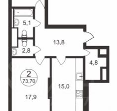 В квартире предусмотрены раздельный санузел, а также хозяйственный блок - гардеробная.
