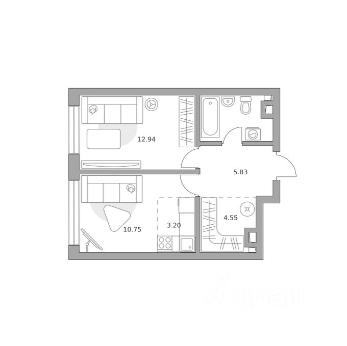 Продаётся 2-комнатная квартира 14, площадью 42,03 м², на 2 этаже в ЖК "Тринити" корпус 1. Стоимость — от 20989956 руб. Квартира с отделкой, планировка односторонняя, окна во двор.