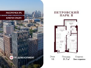 Продаётся 1-комнатная квартира 51.7 кв.м. в ЖК "Петровский парк II" на 10-м этаже 25 этажного дома.
