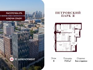 Продаётся 2-комнатная квартира 72.8 кв.м. в ЖК "Петровский парк II" на 8-м этаже 17 этажного дома.