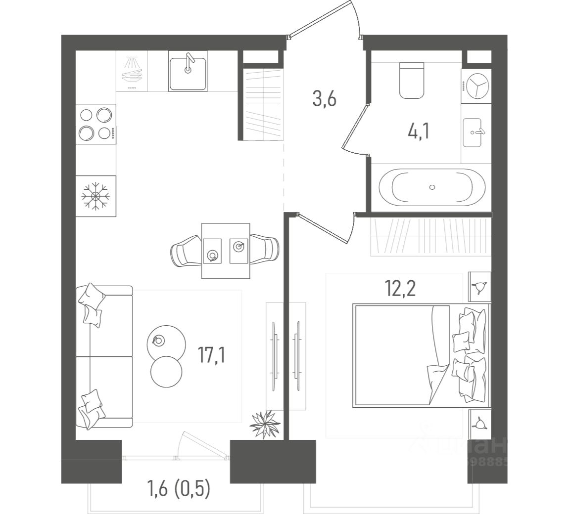 Прямая продажа от застройщика! Продается 1-комнатная квартира, квартира номер 91 общей площадью 37.5 кв.м. на 10 этаже 27 этажного дома, 1. Без отделки.