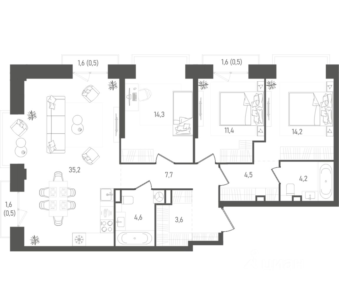 Прямая продажа от застройщика! Продается 3-комнатная квартира, квартира номер 124 общей площадью 101.2 кв.м. на 15 этаже 27 этажного дома, 1. Без отделки.