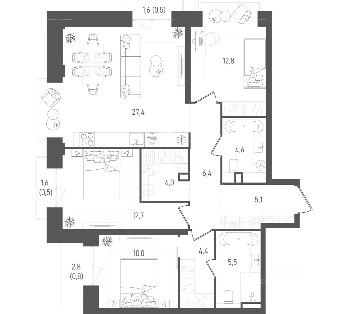 Прямая продажа от застройщика! Продается 3-комнатная квартира, квартира номер 93 общей площадью 94.7 кв.м. на 11 этаже 27 этажного дома, 1. Без отделки.