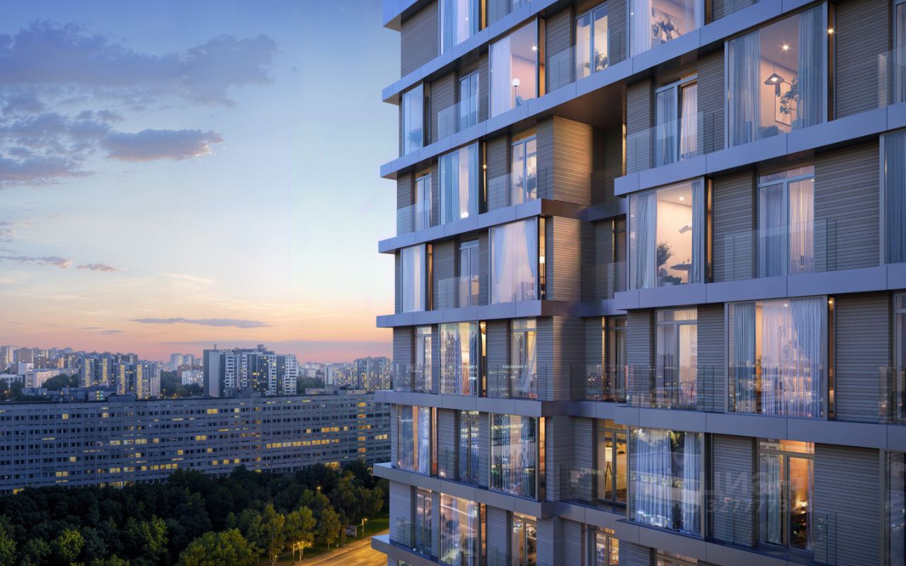 В каждой квартире — джамбо-окна в пол и балконы, стирающие грань между интерьером и городским пейзажем.