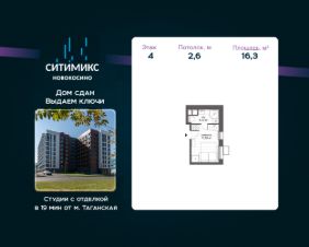Продаётся уютная студия-апартаменты в 9-ти этажном комплексе, общей площадью 16,3 кв.м., на 4 этаже.