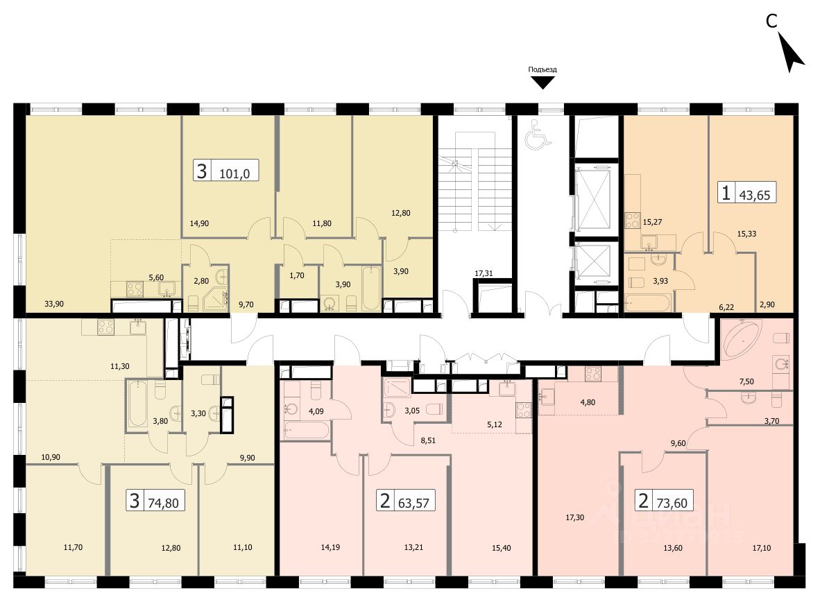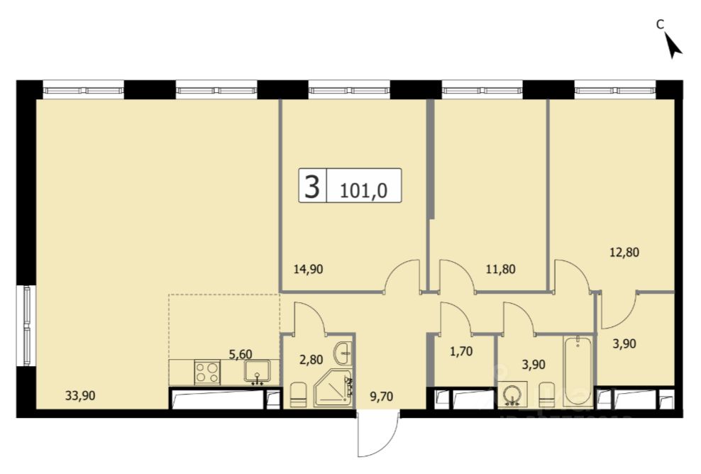 Квартира без отделки — ваша возможность создать идеальное пространство по индивидуальному проекту. Жилая площадь - 73,4 кв. м., кухня 5,6 кв. м., потолки 3,1 м.