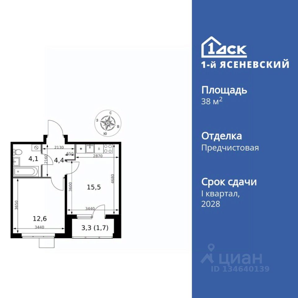 Продаётся 1-к квартира номер 469 общей площадью 38.3 кв.м. на 18-м этаже 18 этажного здания. Предчистовая отделка. Цена с учётом скидки.