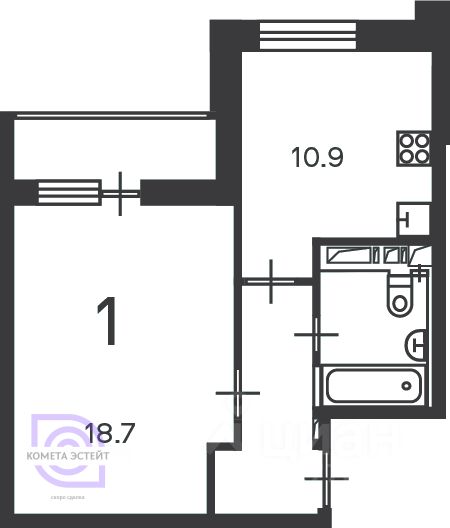 18,7 м²