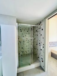 Встроенный полноразмерный холодильник. Встроенная полноразмерная морозильная камера. Мусороизмельчитель. Фильтрация воды. Водонагреватель на 70 литров. Встроенная стиральная машина с функцией сушки. Плита и духовой шкаф. Портативная гладильная система. Хозяйственных блок. Шкафы с подсветкой. Кондиционеры. Бризеры. Дешевая система с гидромассажем. Инсталляции. Ванна на двоих. Бортовые смесители. Дешевой комплект с термостатом. Зеркала с подсветкой. Трубчатые высокие радиаторы. Высокие двери скрытого монтажа. На террасу выведена вода и электричество для гриля. Садовая мебель из ротанга. Видео наблюдение на этаже.
