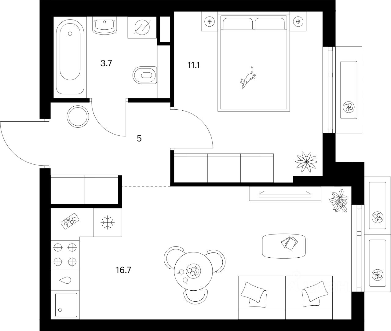 Во дворах-парках жилого квартала есть места для отдыха, детские и спортивные площадки. На первых этажах домов расположены магазины, кафе и полезные сервисы. Также вблизи проекта есть несколько масштабных торговых центров. До ТЦ "Саларис" пять минут пешком. Артикул 1024131 (Застройщик ООО "Специализированный Застройщик "Тирон")