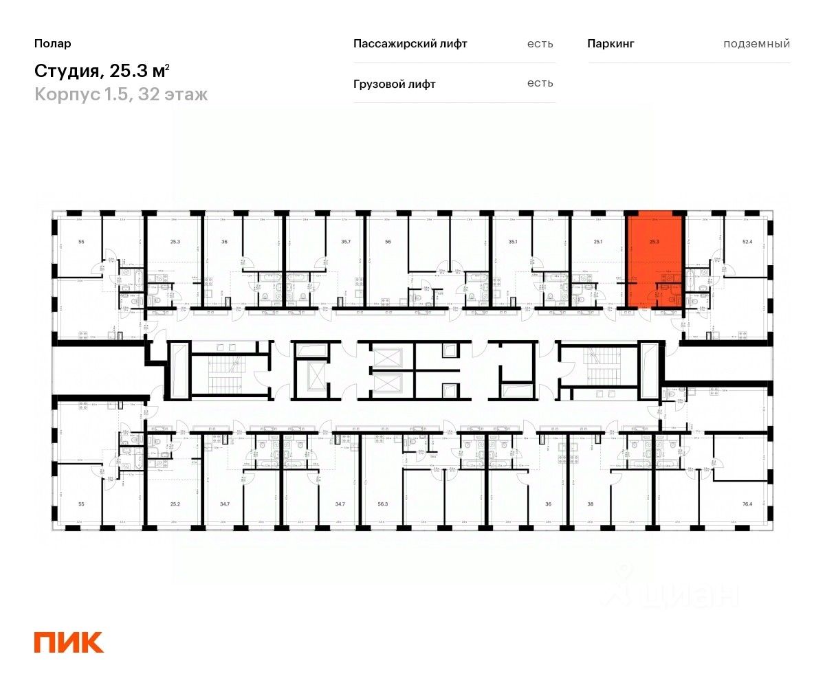 Продаётся квартира-студия площадью 25,3 кв.м на 32 этаже 50 этажного дома (Корпус 1.5, Секция 2) проекта ПИК Полар. Светлый просторный подъезд на уровне земли, функциональная планировка, большие окна, предчистовая отделка.