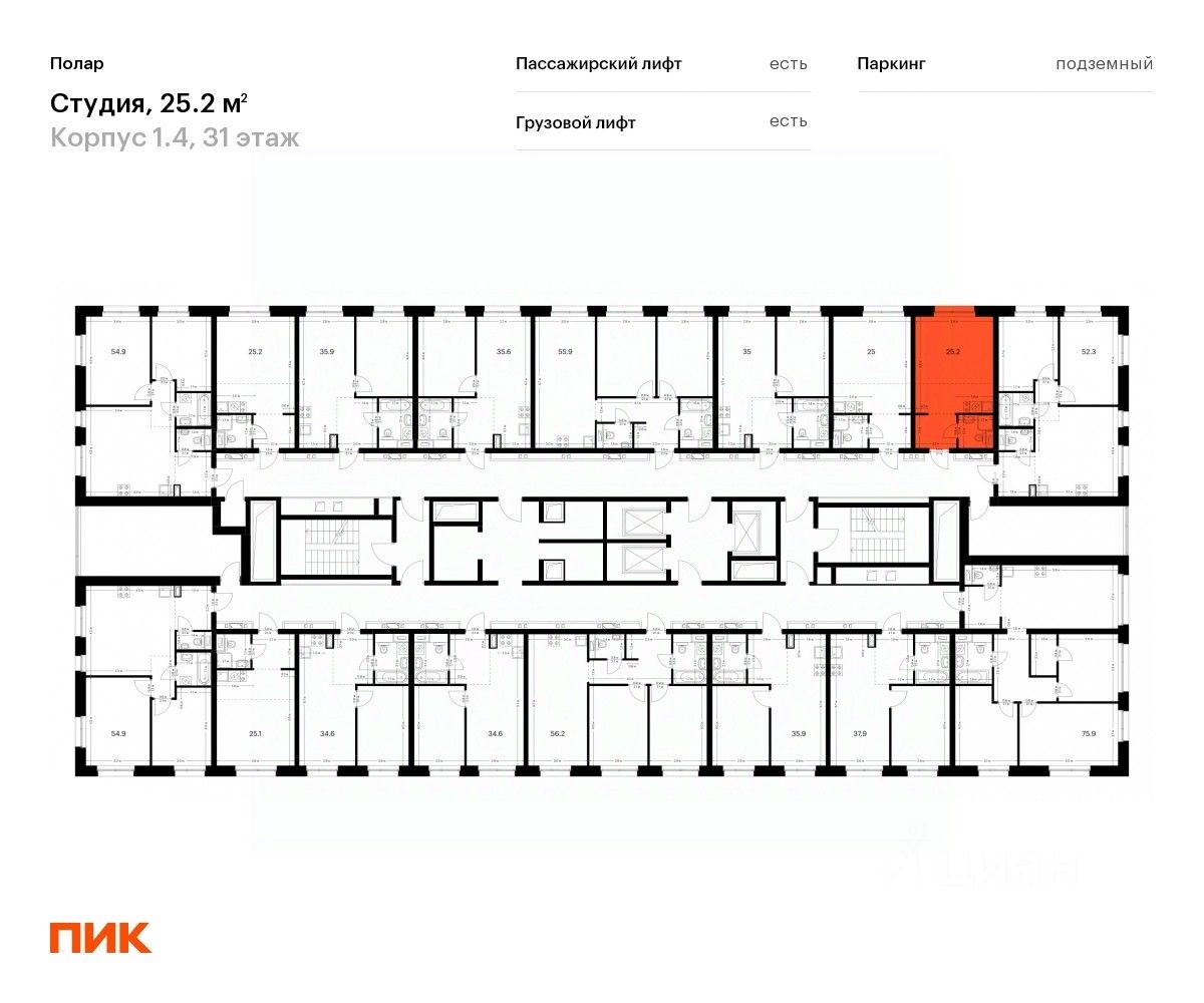 Продаётся квартира-студия площадью 25,2 кв.м на 31 этаже 45 этажного дома (Корпус 1.4, Секция 1) проекта ПИК Полар. Светлый просторный подъезд на уровне земли, функциональная планировка, большие окна, c отделкой.