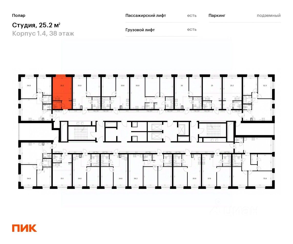 Продаётся квартира-студия площадью 25,2 кв.м на 38 этаже 45 этажного дома (Корпус 1.4, Секция 1) проекта ПИК Полар. Светлый просторный подъезд на уровне земли, функциональная планировка, большие окна, c отделкой.