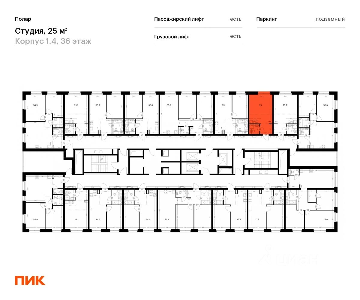 Продаётся квартира-студия площадью 25 кв.м на 36 этаже 45 этажного дома (Корпус 1.4, Секция 1) проекта ПИК Полар. Светлый просторный подъезд на уровне земли, функциональная планировка, большие окна, c отделкой.