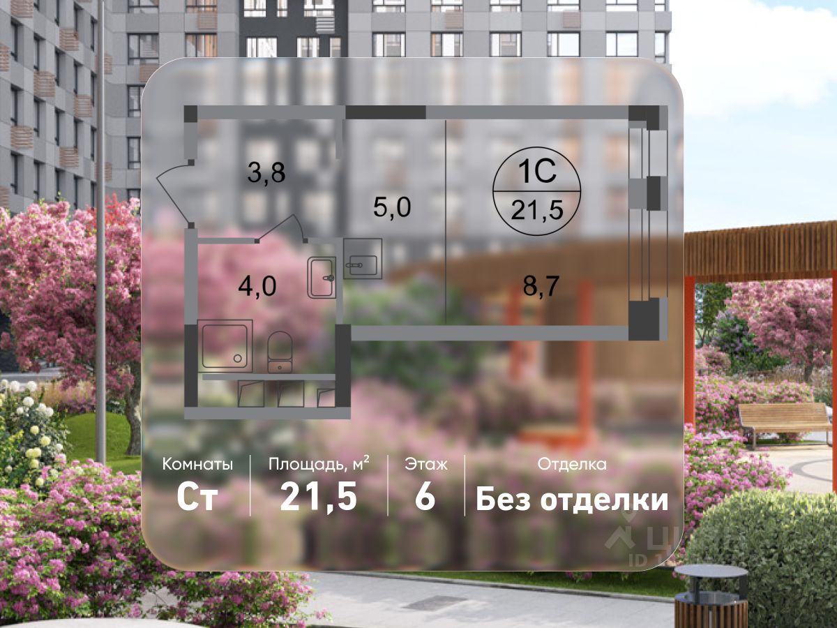 Общая площадь квартиры - 21,5 кв. м, этаж 6 из 20.