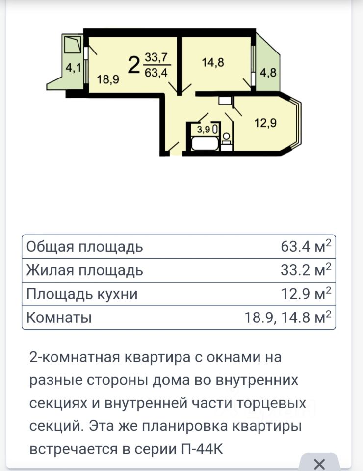 63,4 м²