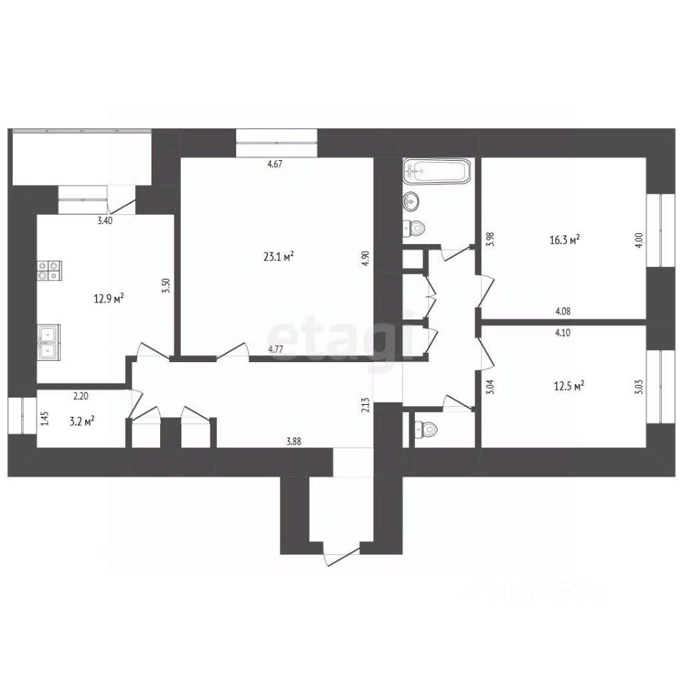 - 95,3 кв.м с лоджией