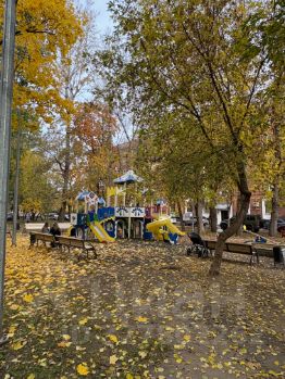 B 3 минутах ходьбы метро Филевский парк, в 5 минутах сам парк Фили. Тихий закрытый двор, с детской площадкой, въезд во двор под шлагбаум. Школа, детсад, магазины - все в 5-10 мин. пешком.