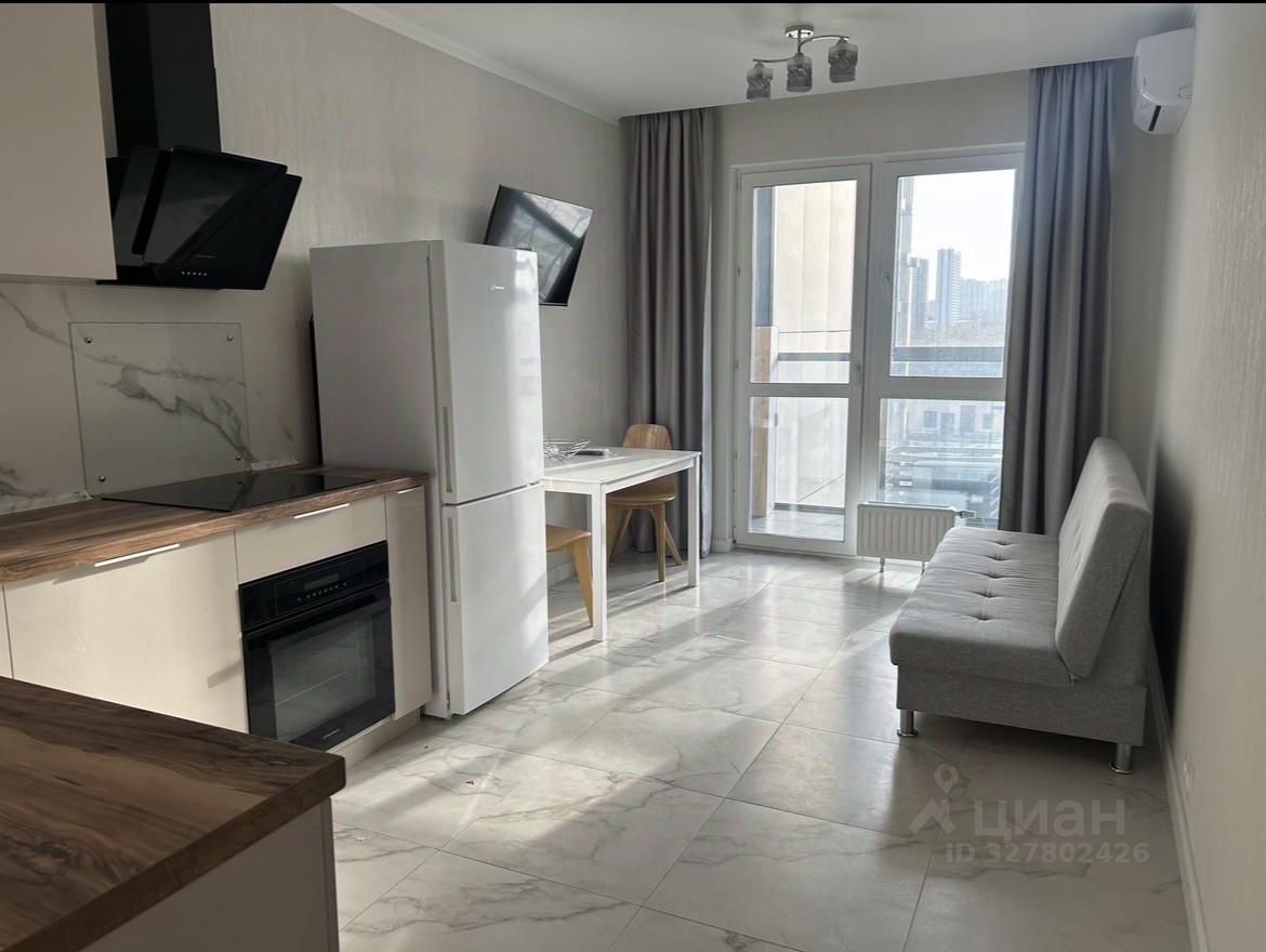 В квартире установлена современная кухня с техникой (варочная панель, духовой шкаф, вытяжка), санузел с качественной сантехникой. Установлен кондиционер.