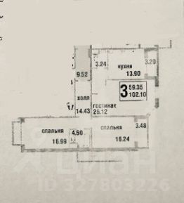 Просторная трехкомнатная квартира площадью 102 кв. м, расположена на первом этаже 17-этажного кирпичного дома 2014 года постройки.
