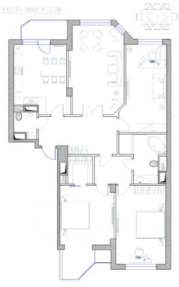 Общая площадь квартиры 128,1 кв.м., разбивка по комнатам: гостиная: 24,7 кв.м., спальные комнаты: 15,8+17+16,2 кв.м. метра.