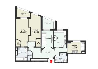 Площадь квартиры 130 м2 с учетом 2-х лоджий (по ЕГРН 117,5 м2).
