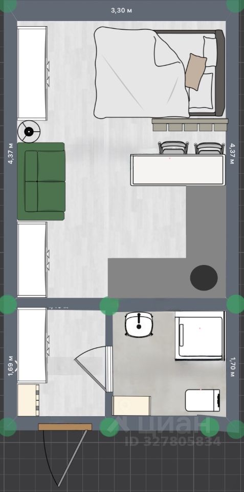 Квартира с дизайнерским ремонтом, в которой каждая деталь продумана до мелочей. Планировка студии максимально функциональна, что позволяет рационально использовать пространство, несмотря на компактную площадь. Окна выходят во двор, поэтому в квартире всегда тихо и спокойно.