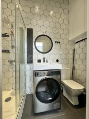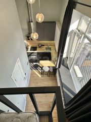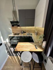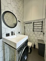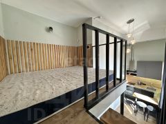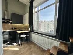В квартире сделан дизайнерский ремонт, который порадует даже самых требовательных покупателей. Пространство студии организовано с умом: жилая площадь составляет 20 кв. м, кухня — 6 кв. м. Совмещенный санузел оборудован всей необходимой сантехникой. Окна выходят во двор, поэтому в квартире всегда тихо и спокойно.