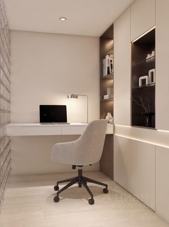 Уже выполнена предварительная планировка и визуализация, продумана логика зонирования: на первом уровне можно организовать просторную кухню-гостиную, санузел, гардеробную/зону хранения и спальню с балконом, на втором — приватную спальню, кабинет, санузел и гардеробную. Это не просто квартира, а объект с готовой идеей, который можно довести до очень красивого и ликвидного результата.