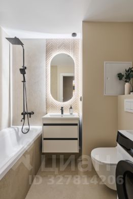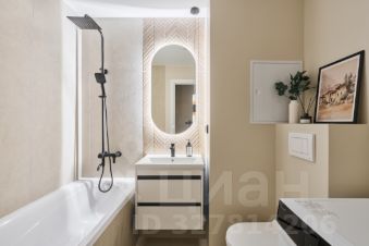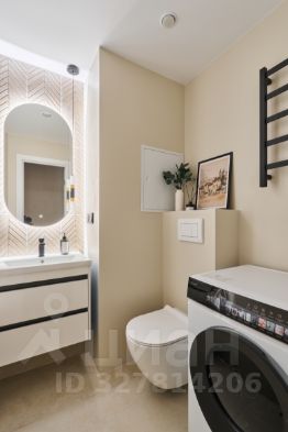 - Дизайнерский санузел с полноценной ванной, стиральной машиной, подогревом пола и тропическим душем